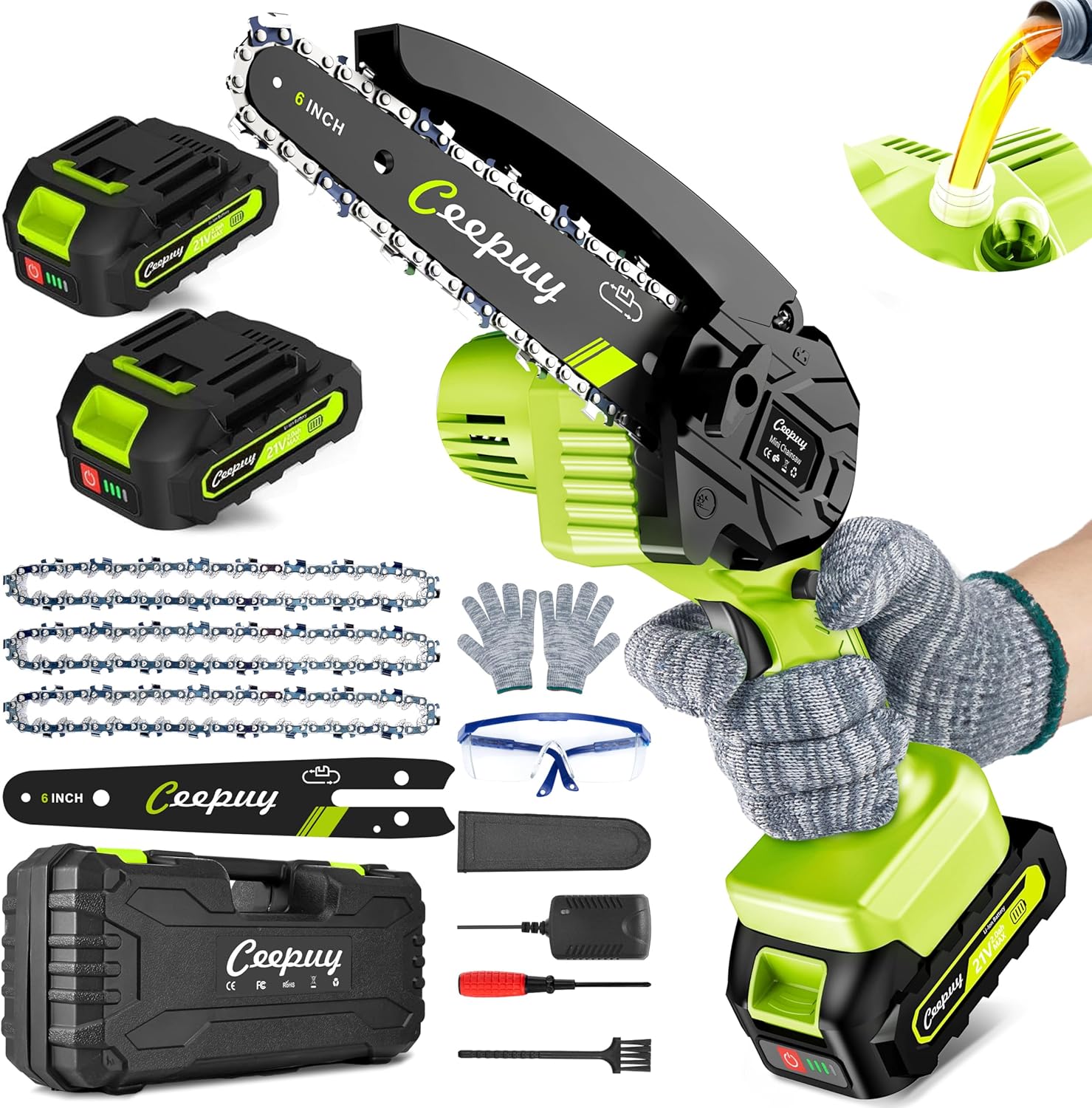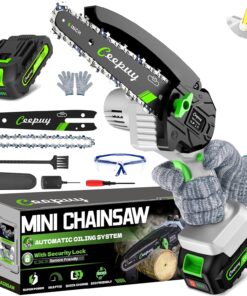 CEEPUY Mini Chainsaw Cordless,6 Inch Portable Electric Chainsaw with Automatic Oiler/Security Lock/Battery Powered Small Handheld Saw for Trees Branches Trimming,Wood Cutting, Gifts for Men Women