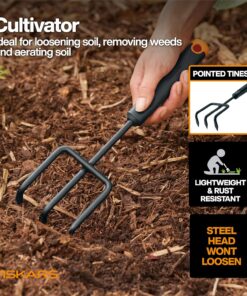 - Fiskars Vegetable Gardening Essentials, 6-piece set gives you six essential tools for cultivating a vegetable garden all the way to your table