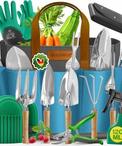 - Safe and comfort: the KESSER garden tool set offers optimal comfort thanks to ergonomic wooden handles that reduce strain on the hands. The knee pads and planting mat provide extra protection and convenience when gardening. The durable bag made of waterproof 600D Oxford material keeps all tools safe and organized – ideal for garden lovers and hobby gardeners.