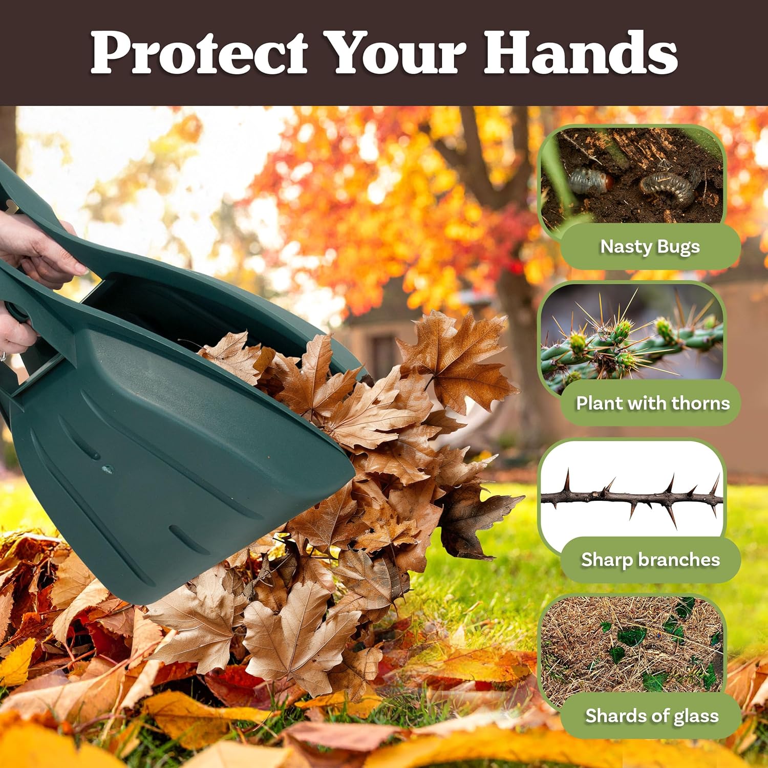 Leaf Scoops Hand Rakes – Lightweight, Durable Grabber Tool for Scooping Up Leaves, Spreading Mulch, Gardening, and Yard Work by Pure Garden (Green)