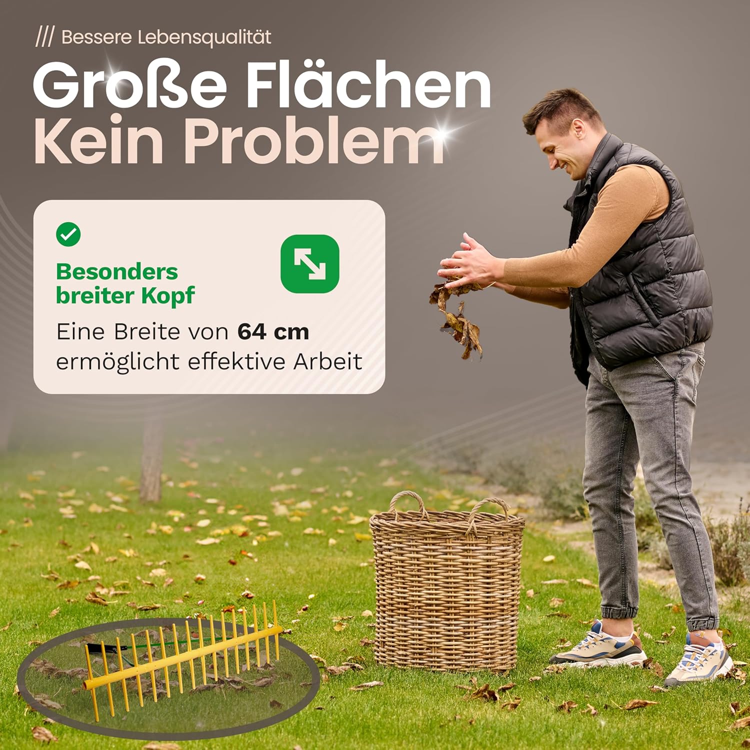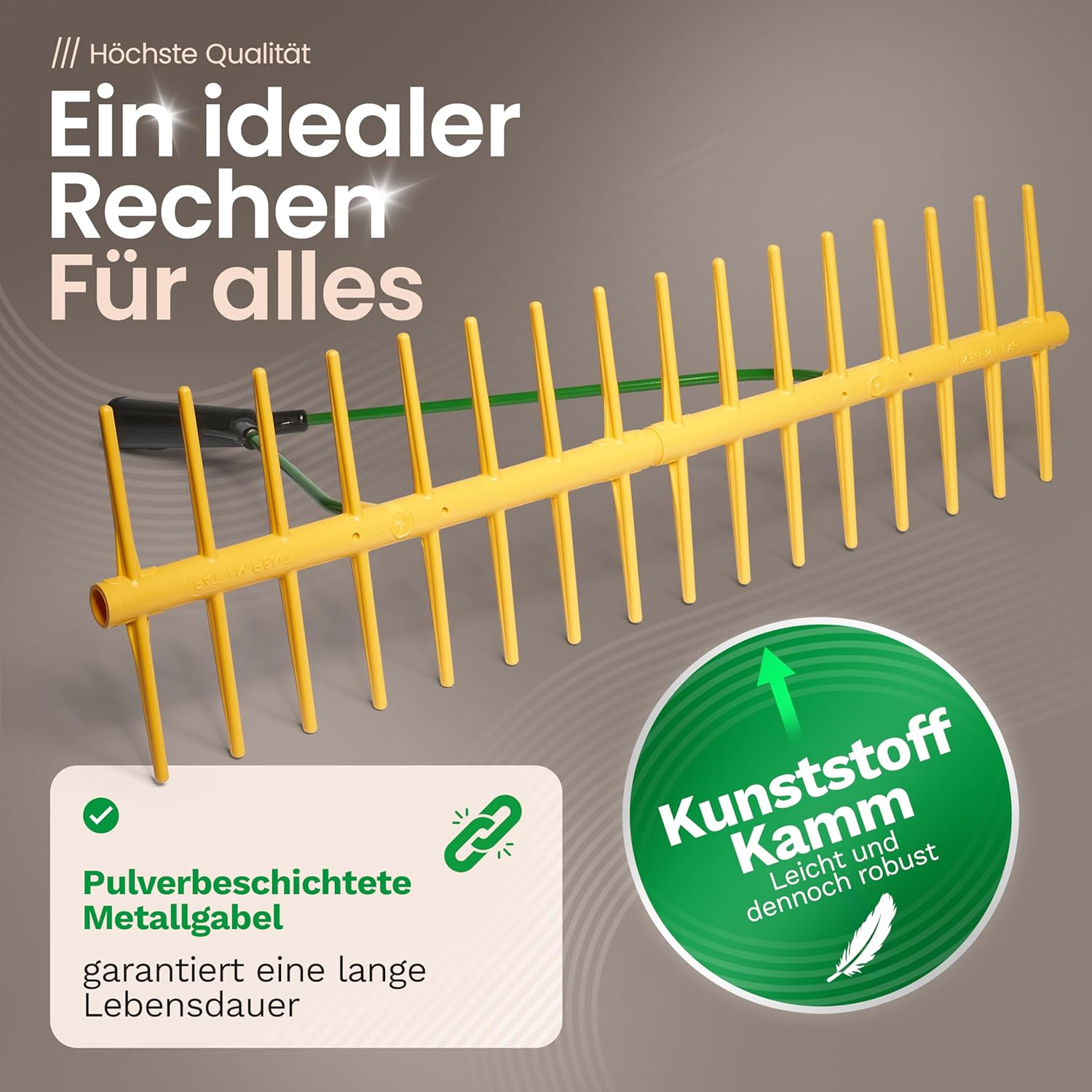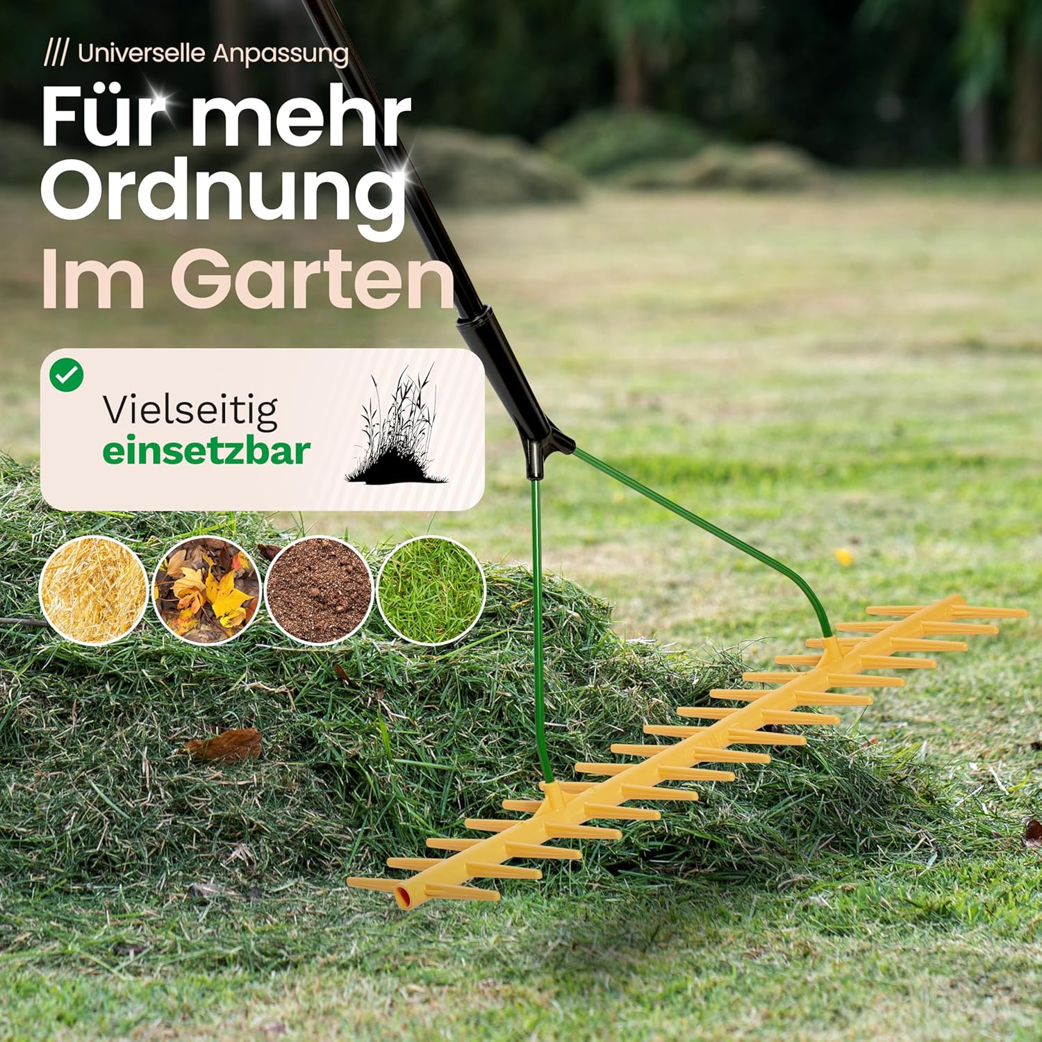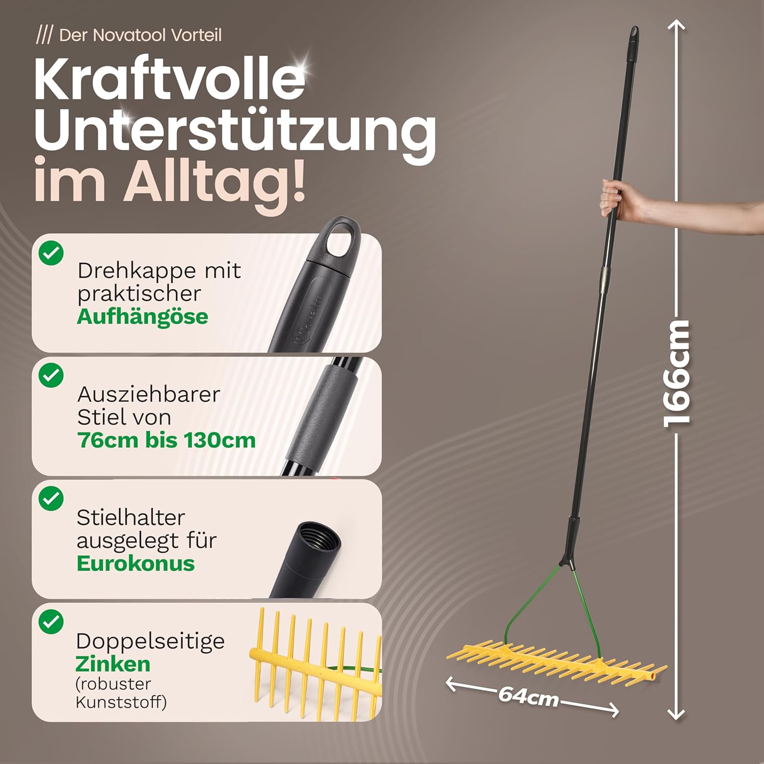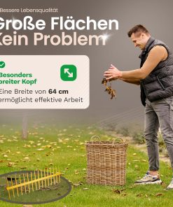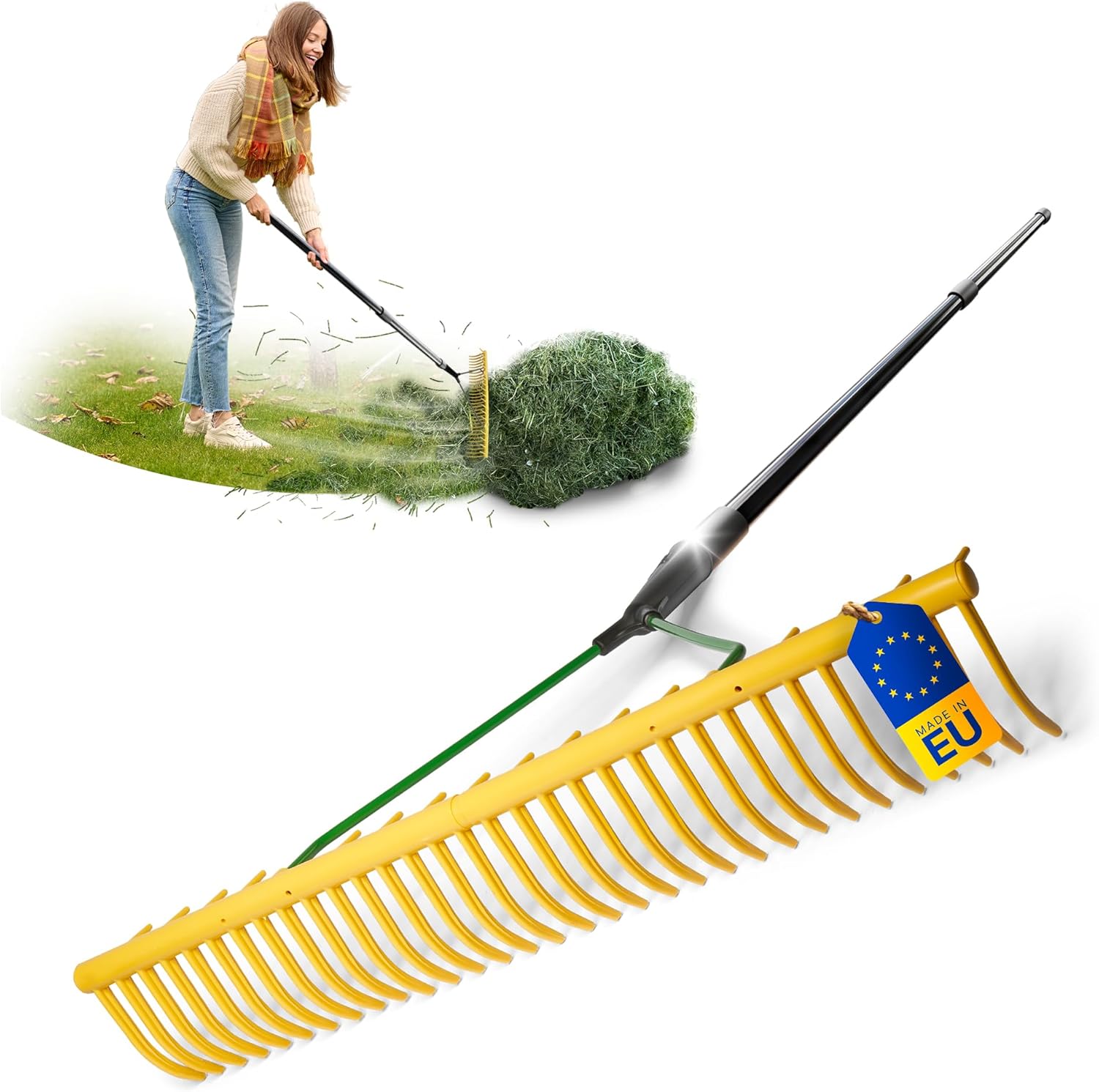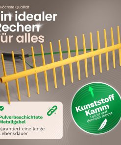 Novatool Hay Rake with 16 Double-Sided Tines and Telescopic Handle up to 152 cm, Working Width 64 cm, Plastic and Metal Rake, Garden Rake, Hay Collector, Lawn Rake, Garden Tool, Yellow