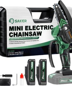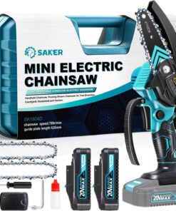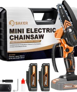 - 【LIGHTWEIGHT AND PORTABLE】 – Saker Mini Chainsaw weighs only 1.1 kg (including battery) and has a total length of 4 inches. Saker cordless mini chainsaw can be used with one hand, and it is not easy to get tired after long-term use. It is very suitable for family and temporary work, even the elderly can easily control it.